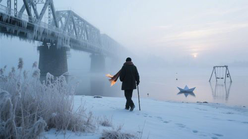 编者按:《我的冬天(六)》以江雾与步履为经纬,编织出一幅精神蛰伏的冬藏图景。诗中「纸船漂荡」「风铃吱呀」等意象,将时光的不可逆性具象为可触的声响与漂流物,而结尾「栽种新的桑麻」则如冰层下的暖流,在苍茫 ...